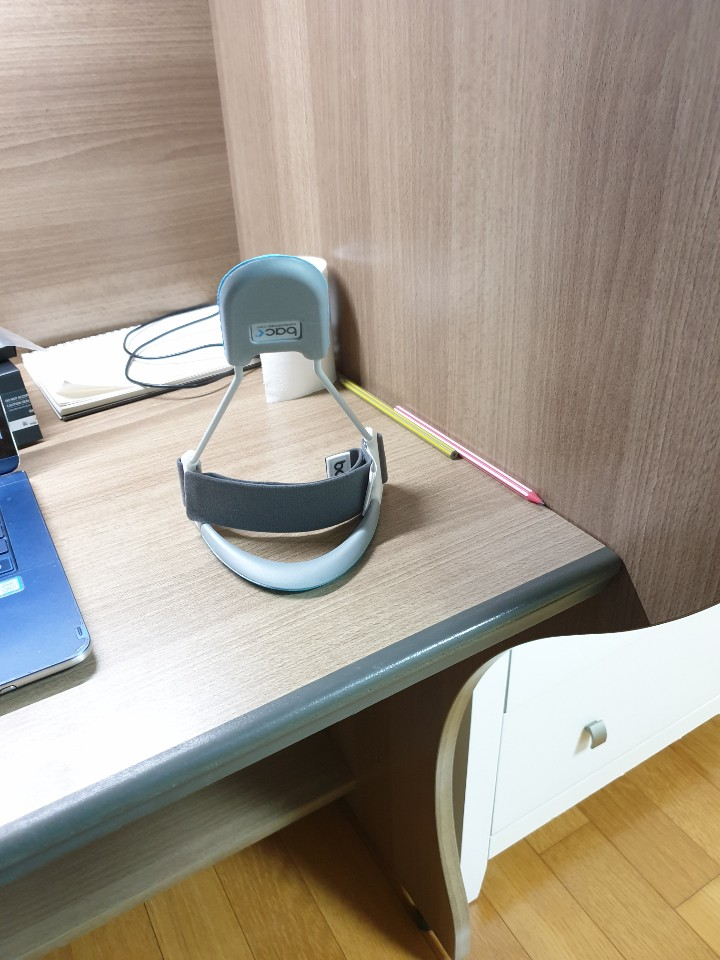 착용감도 괜찮았습니다. 하면서 목이 앞으로 가려고하면 저 목밑에 받침대가 못가게 막아주는데 사용중에 계속 목이 받침대에 닿는걸 느끼면서 평소에 엄청 거북목 자세로 있으려했구나를 느낄 수 있습니다. ㅎㅎ
