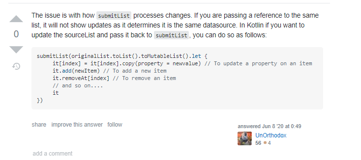 대부분의 예제가 ViewModel LiveData를 액티비티에서 콜백받아 submitList()하는데 저는 다르게 했는데 밑과 같은 이유가 발생하는데 해결은 하긴했지만 아직 정확한 원인을 못찾고있습니다.