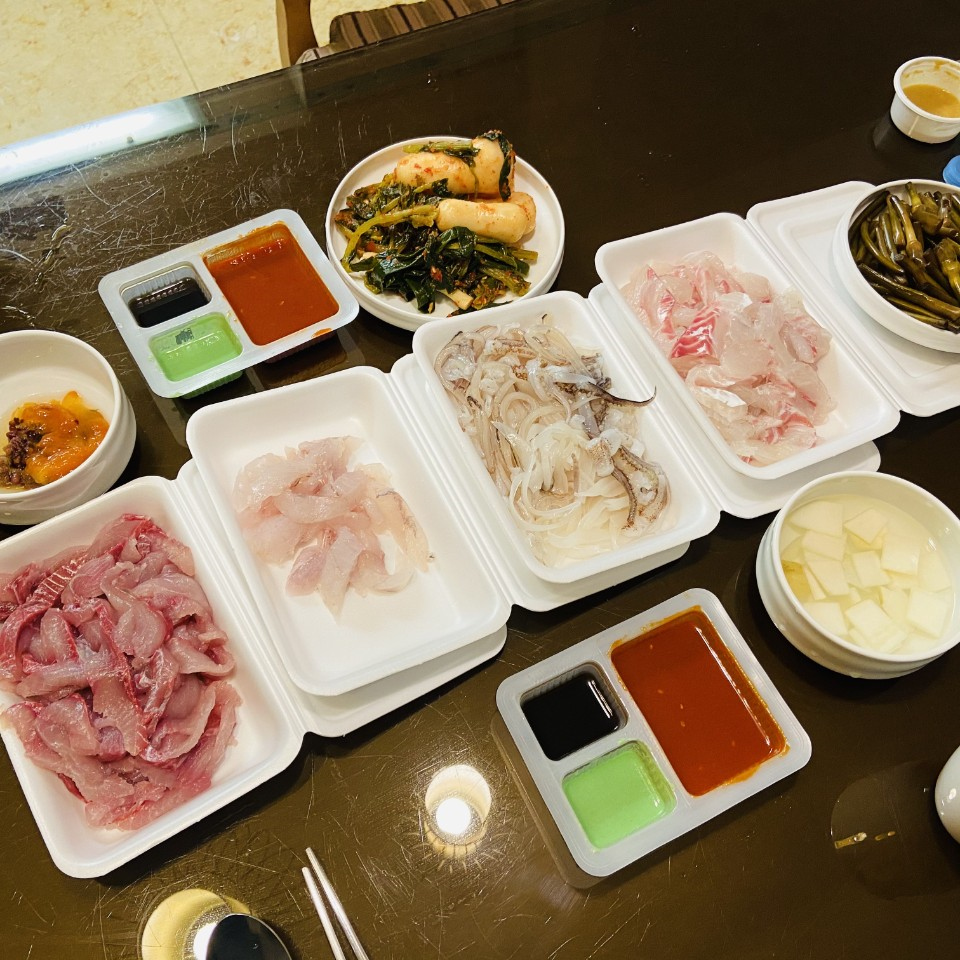 시장에서 먹을거리를 산 후 대포항으로 회와 매운탕을 사러 갔습니다. ⚓⛵🛳 총 65,000원 !!