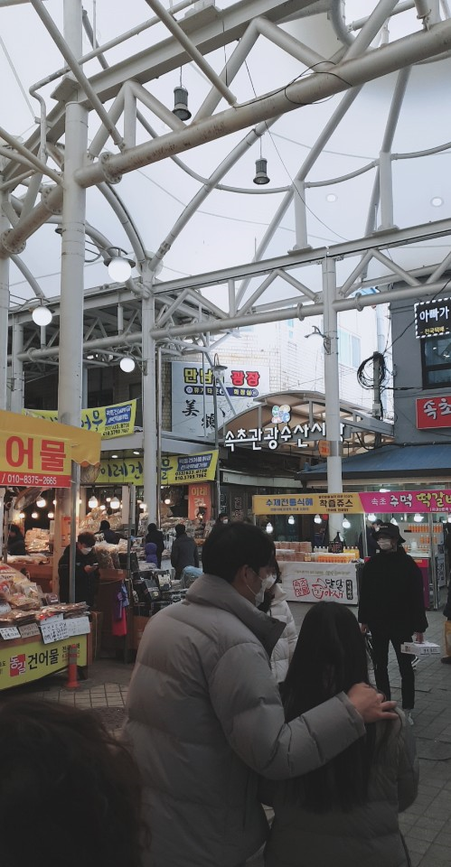 이후 3시까지 시간이 많이 남아서 시장구경도 하고 저녁에 먹을거리도 사러 속초 중앙 시장을 다녀왔습니다. 코로난데도 사람이 많았습니다. 북적북적👽