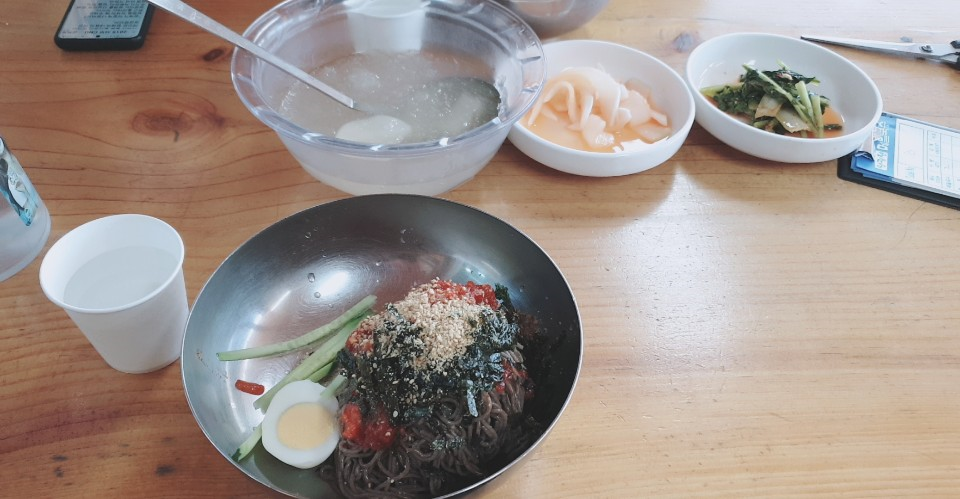 처음에는 저 동치미(?) 국물도 종이컵에 떠먹는건가 했는데 메밀국수에 두숟가락 넣어서 같이 먹는거였습니다. ㅎㅎ