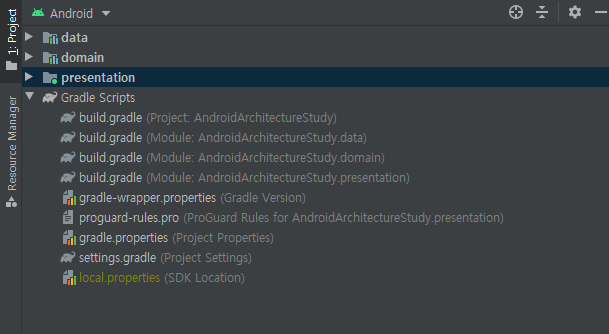 그리고 계층간 의존성도 Presentation -> Data -> Domain 이 되기 위해 다음과 같이 app 수준의 build.gradle에 디펜던시를 추가해주었습니다.