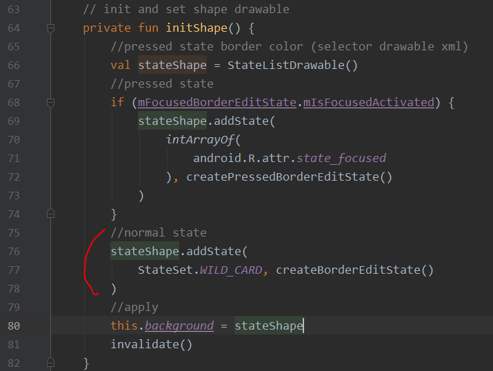 val stateShape = StateListDrawable()