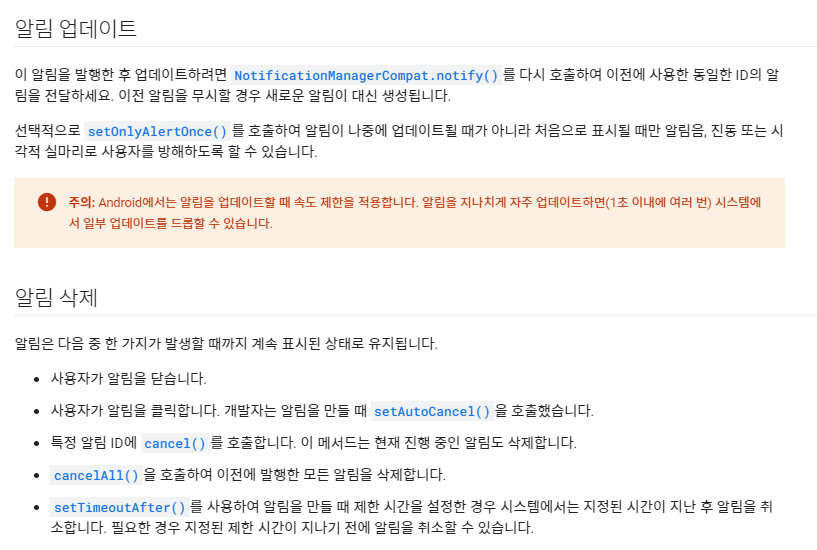 등록뿐 아니라 위에 참고에 써져있는 노티피케이션 업데이트, 삭제 관련 내용도 가져와봤습니다.