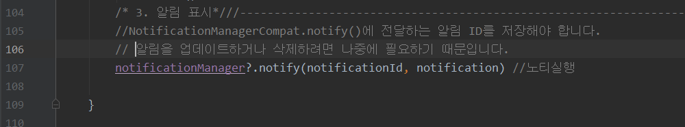 notificationManager?.notify(notificationId, notification) //노티실행