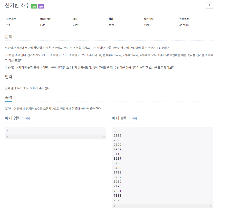 오늘은 백준 2023 신기한 소수 문제를 풀어봤습니다.