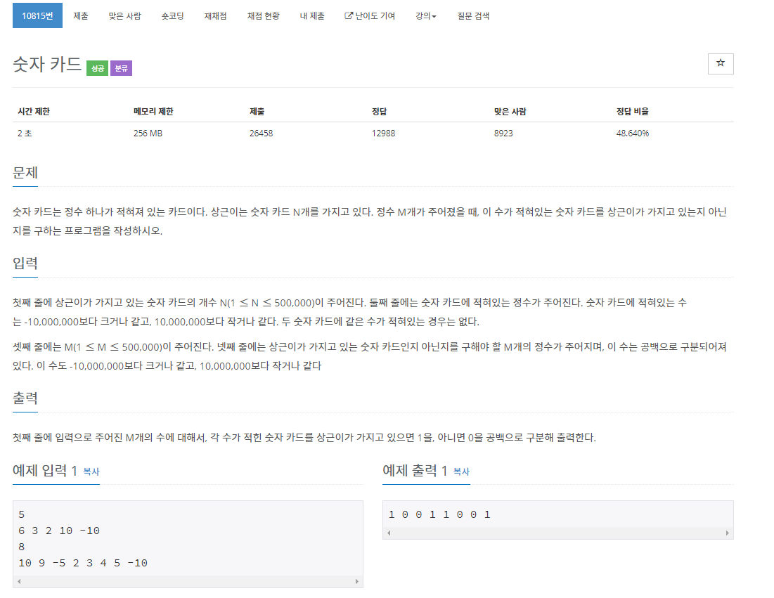 10815번: 숫자 카드