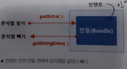 그리고 인텐트 안에 번들이 있다. 즉 실제데이터는 인텐트안의 번들에 넣어지는것이다.