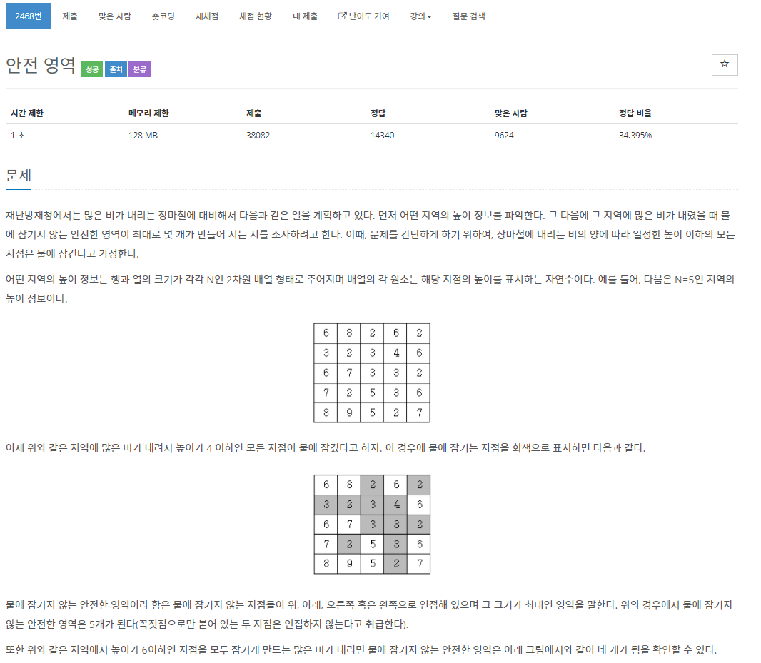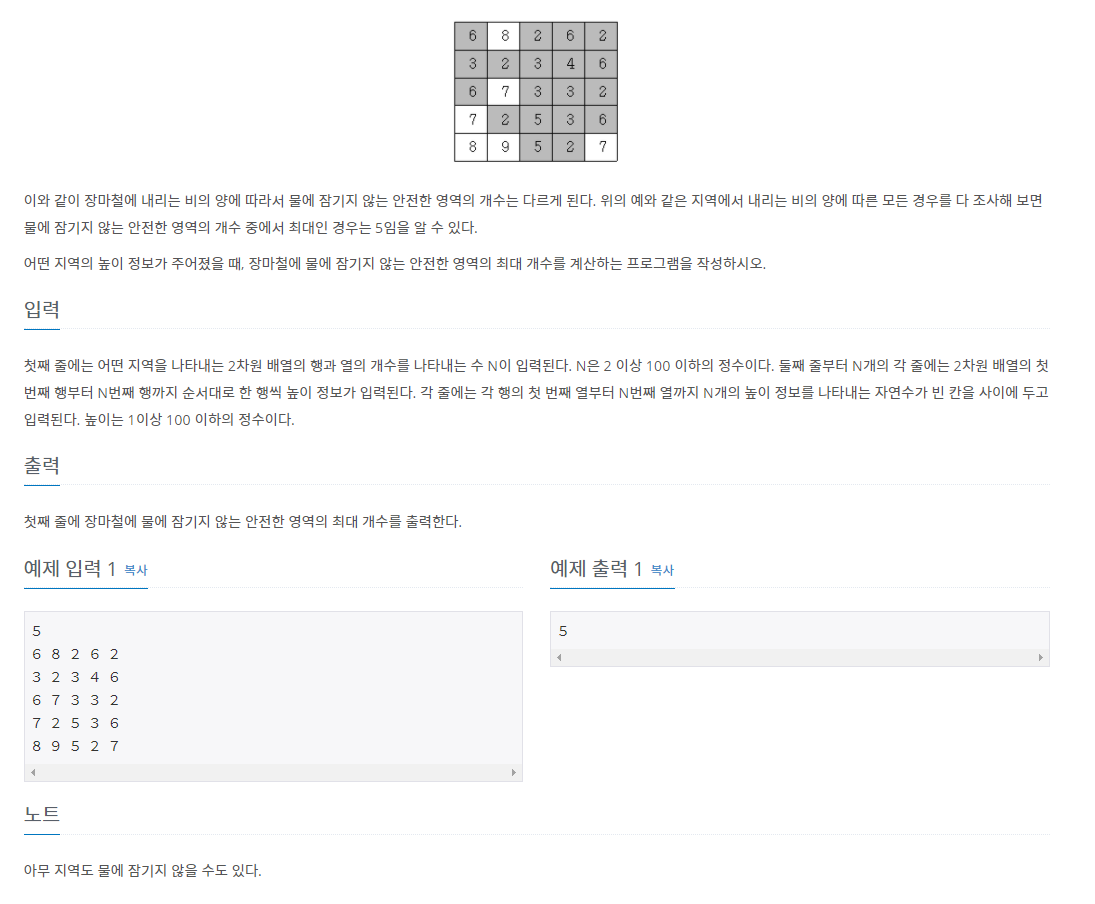 백준 그래프 유형분류에서 푼 안전영역이라는 문제입니다. ㅎㅎ