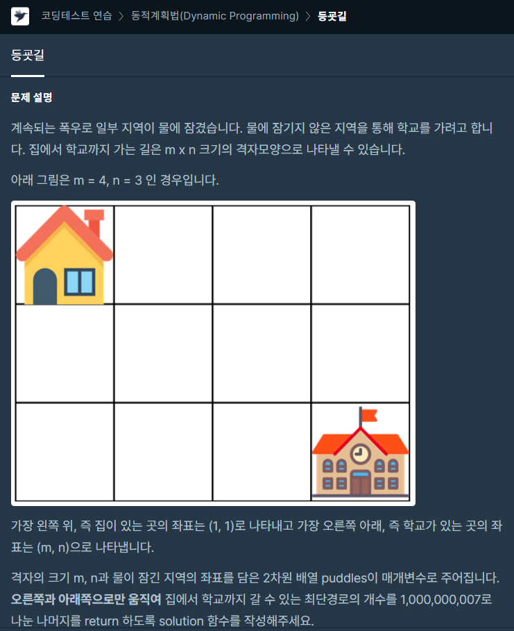 코딩테스트 연습 - 등굣길