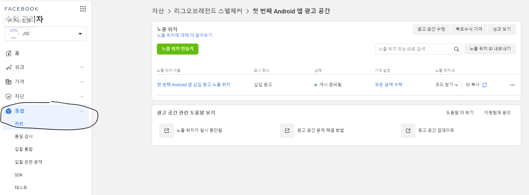이때 PLACEMENT_ID는 아래와 같이 내가만든 삽입광고 설정에 들어가서 빨간색 부분을 누르면 나옵니다.
