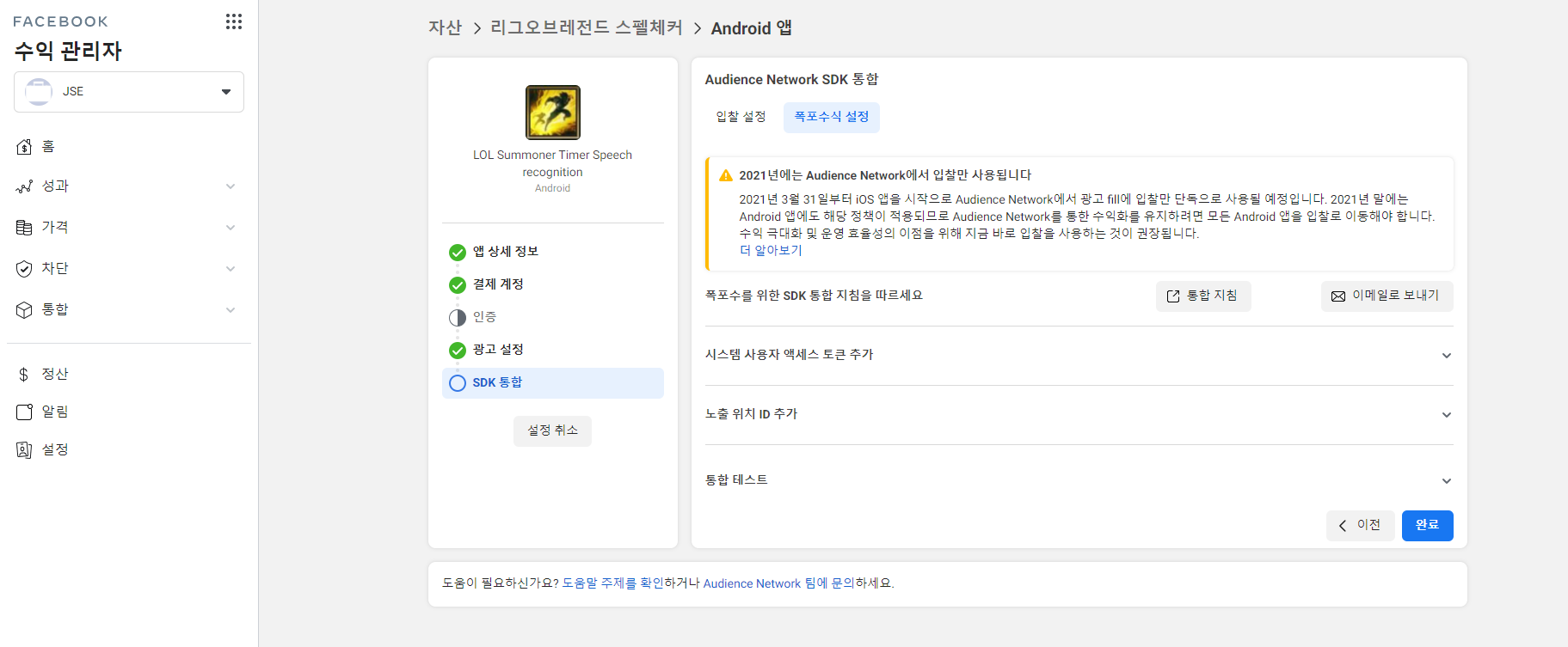 토큰이랑 ID 값을 받는데 이걸로 이제 광고 코드를 구현하면 되나봅니다.