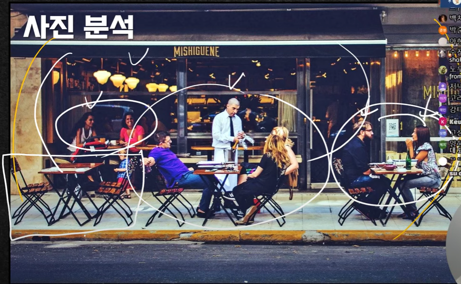 다음과 같이 사진을 보고 묘사를 하면됩니다.