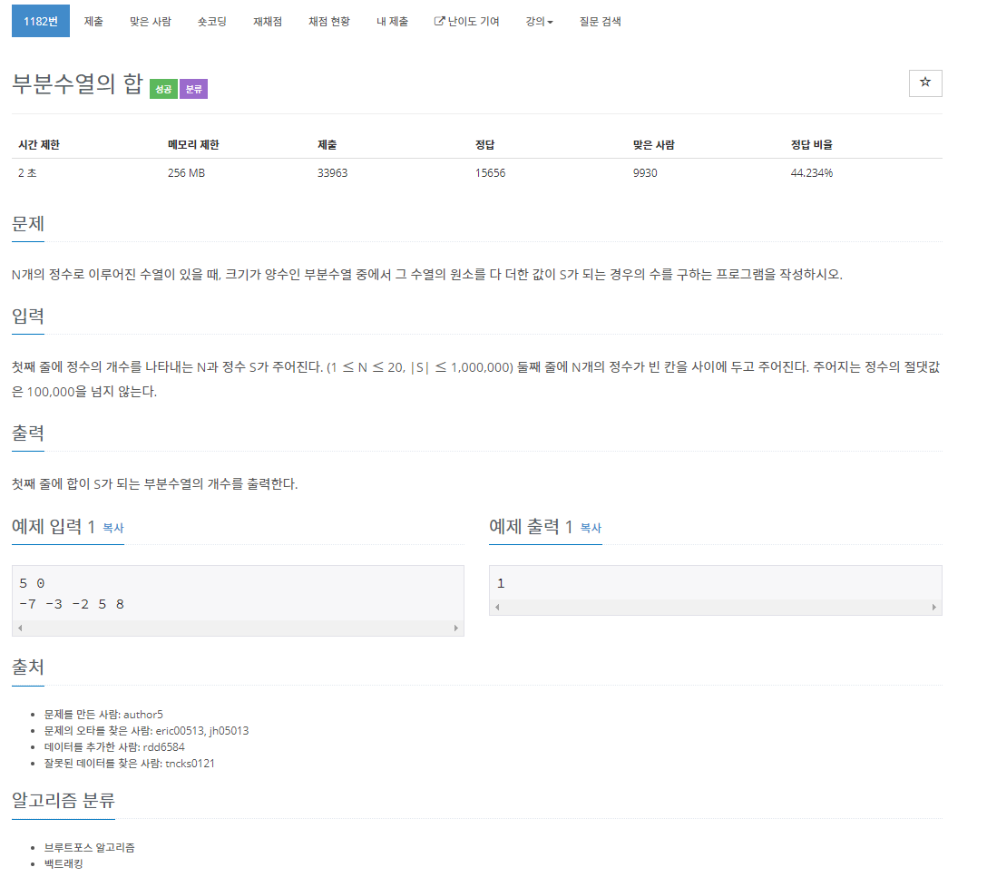 [알고리즘] 백준 1182 부분수열의 합 -백트랙킹, 그리디- 자바 본문