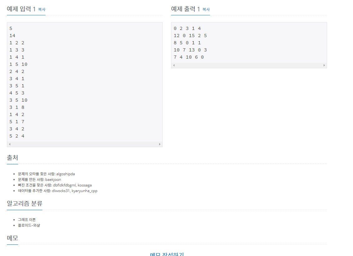 알고리즘 플로이드 워셜 유형을 풀어봤습니다.