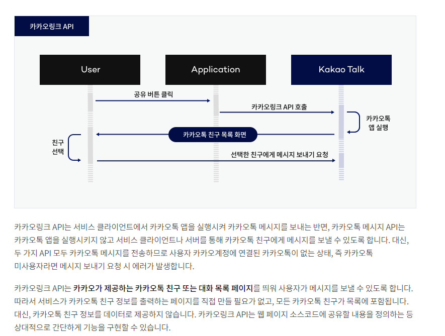 카카오링크는 사용자가 카카오톡 메시지로 친구에게 메시지에 담긴 정보를 공유하는 기능입니다. 사용자는 카카오링크가 적용된 웹 페이지 또는 특정 정보를 자신의 카카오톡 친구에게 공유할 수 있습니다.