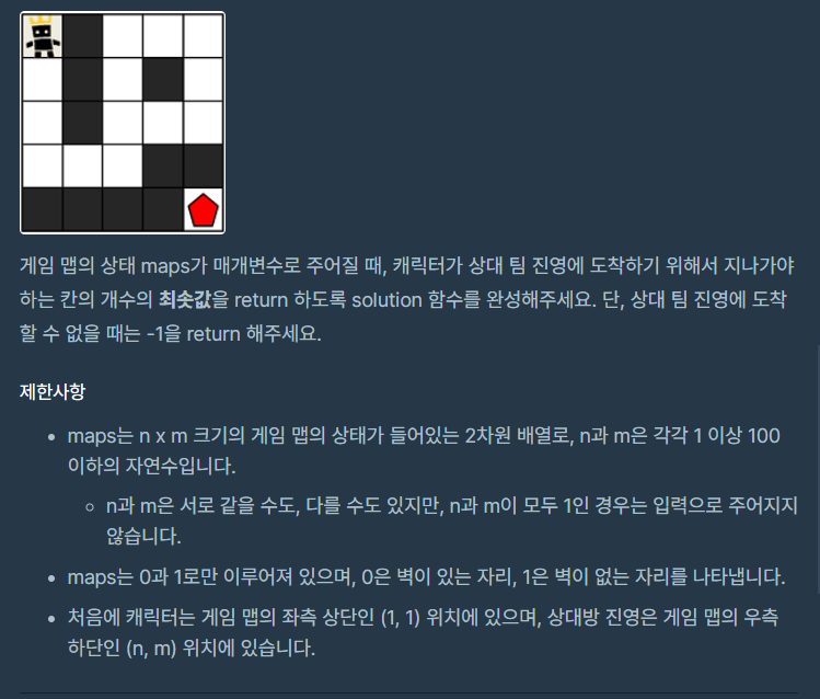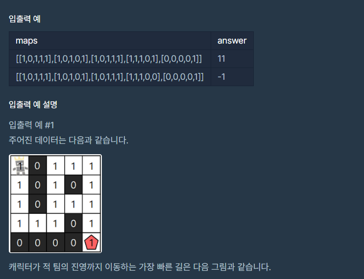 public int solution(int[][] maps) { // 0:벽, 1:길