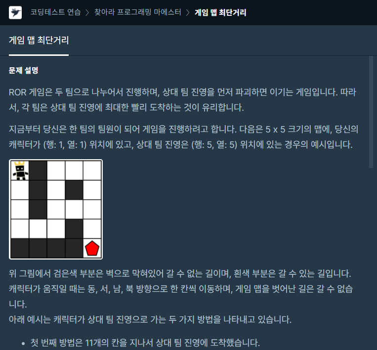 코딩테스트 연습 - 게임 맵 최단거리