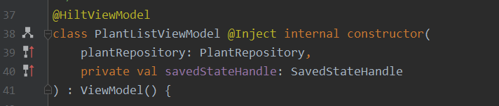 생성자로 MVVM의 Model 에 해당하는 Repository와 SaveStateHandle을 가지고 있다.