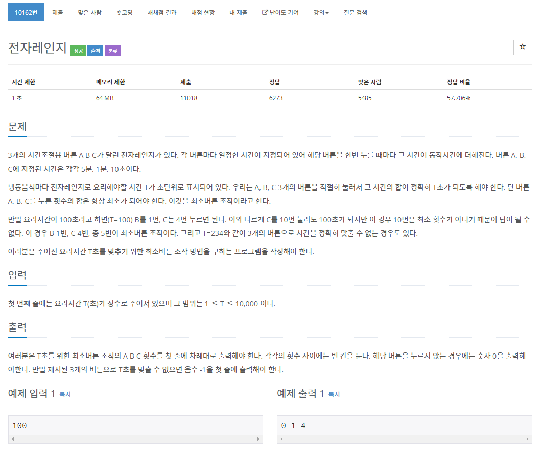 백준에서 그리디 유형의 전자레인지 문제를 풀어봤습니다. ㅎㅎ