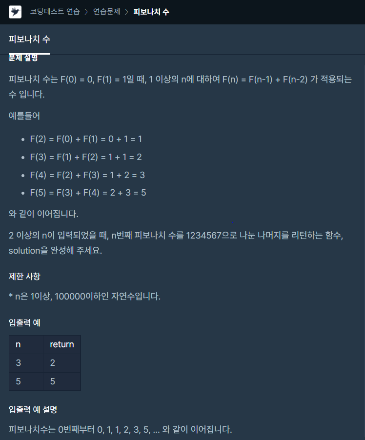 코딩테스트 연습 - 피보나치 수
