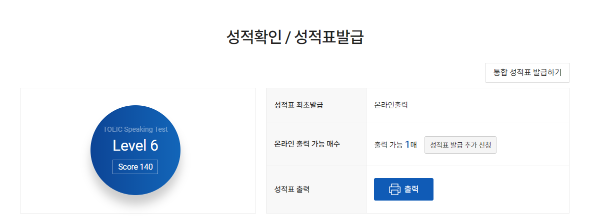 시험을 생각보다 못봤다고 느껴서 당연히 Level 5 가 나올것 같았는데 6이 나와서 의외였고 천만다행이었습니다. (토스시험이 드럽게 비싸서 재시험보기도 시간도 돈도 무척 아깝거든요..ㅠ) 토익스피킹이 고득점이 어렵지 생각보다 점수를 잘주는것 같기도 합니다..