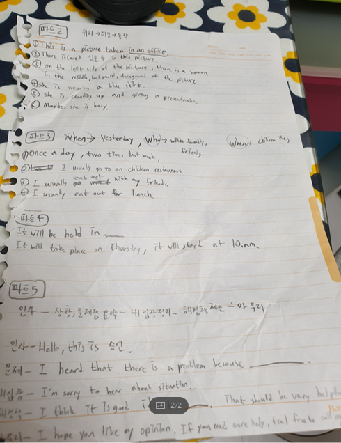 참고로 토익스피킹은 문제은행과도 같기 때문에 기본 템플릿이나 팁을 아는게 매우 중요합니다.