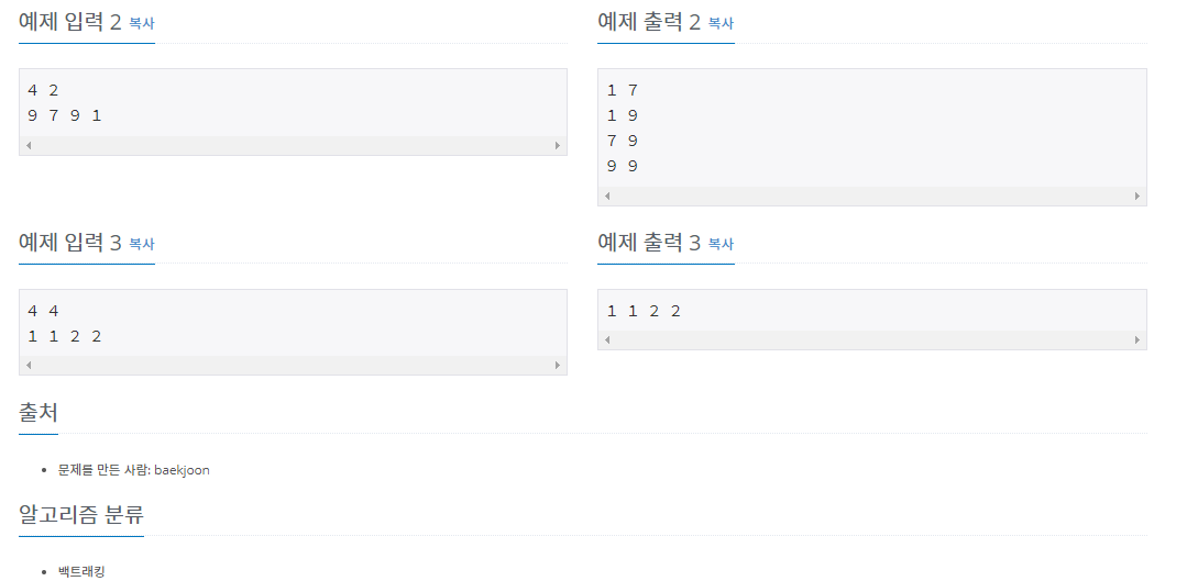 백준 백트래킹 대표문제 N과 M 시리즈 10번을 풀어봤습니다. ㅎㅎ