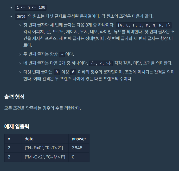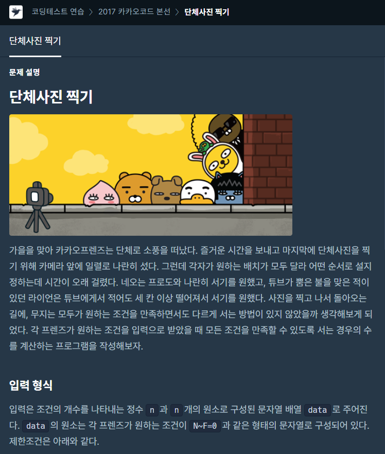프로그래머스 단체사진 찍기 문제를 풀어봤습니다. ㅎㅎ
