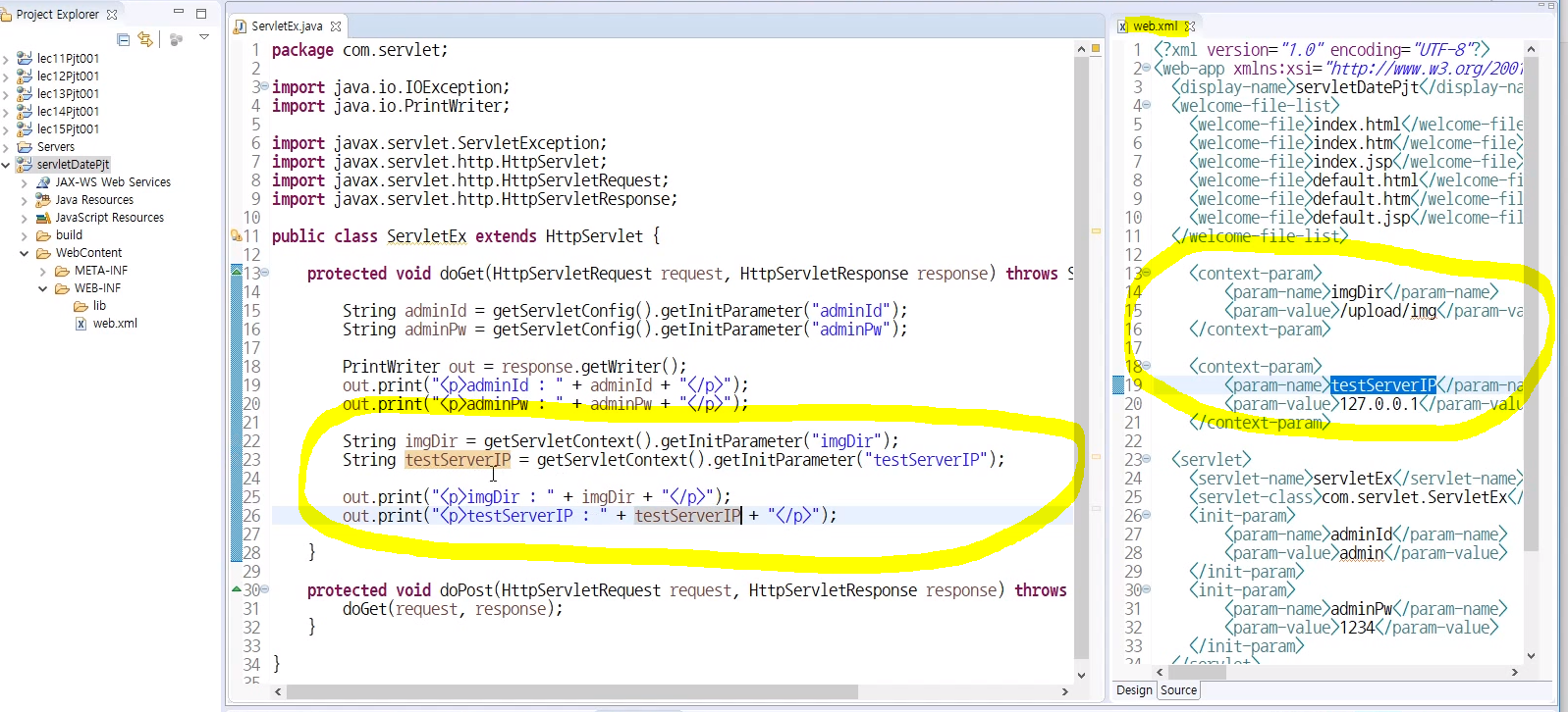 정리하자면 해당 서블릿에서만 (하나) 데이터를 공유하는 방법은 servlet parameter, 전체 서블릿에서 공유하는 방법은 context parameter 방법이있다.