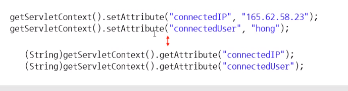 =>한 서블릿의 전역변수와 값을 저장한다고 생각하면 편하다.