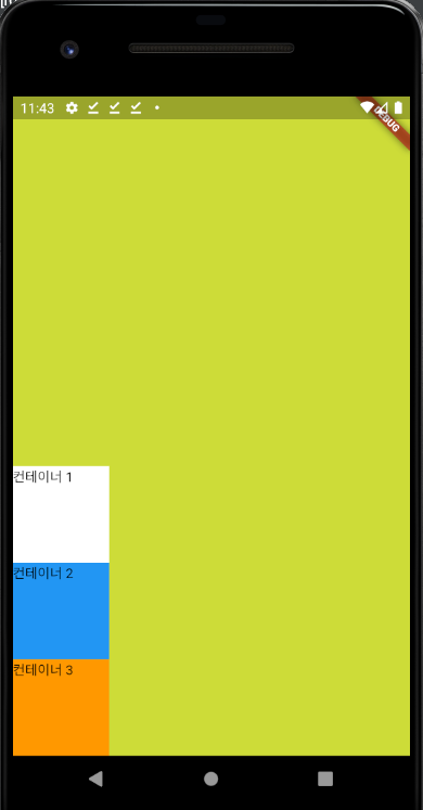 Conatiner 는 Child가 없거나 크기를 정해주지 않으면 가능한 최대 크기로 설정이 됩니다. Child가 있는 경우는 Child의 크기만큼 자동 설정 됩니다. 이러한 자동설정 말고 높이와 너비 패딩, 마진 등을 당연히 개발자가 설정할 수 있습니다.