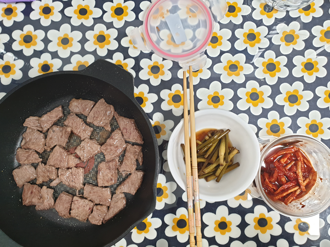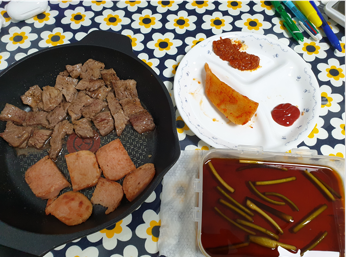 고기와 스펨과의 조합 흠흠... 어울리진 않았습니다.