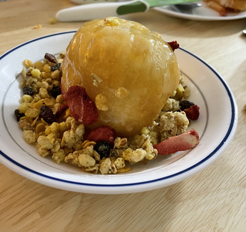 복숭아의 씨가 있는 부분을 동그랗게 파낸 다음에 요거트를 넣고 뒤집어서 냉동실에 1시간 이상 냉동시키면 된다고 합니다. 냉동 후 그래놀라와 꿀을 살짝 뿌려서 먹으면 됩니다. 맛있게 먹었으나 전 안만들어 먹을겁니다. 귀차니즘ㅎㅎ