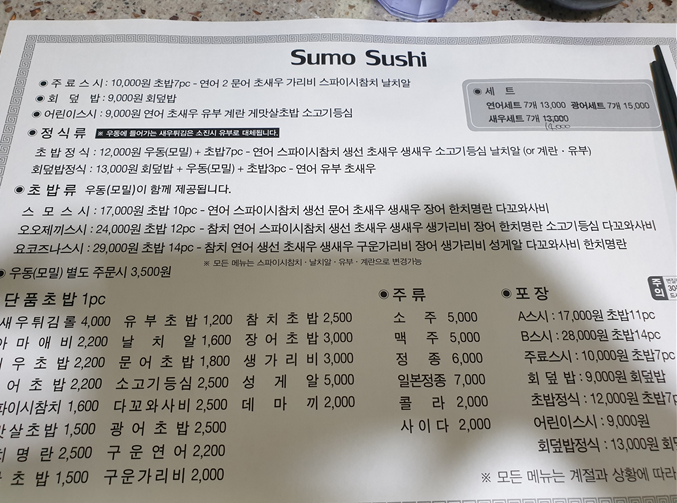 초밥정식과, 스모스시를 시켜 나눠 먹었는데 너무 맛있는데 양이 살짝 부족한거 같기도 합니다. ㅠ