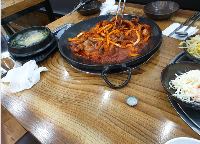 쭈꾸미, 볶음밥, 칡냉면를 시켜먹었는데 다 맛있었습니다. 다만 둘이서 먹는데 너무 오버해서 시켜서 많이 남겼습니다. ㅠ 그리고 8시반에 왔는데 식당이 9시 반까지라 시간도 부족했습니다. ㅠㅠ 군대에서 밥한톨 남기면 난리나던 시절이 있어서 음식을 남기면 아까워하고 배불러도 먹게 되는 습관이 아직도 있네요..