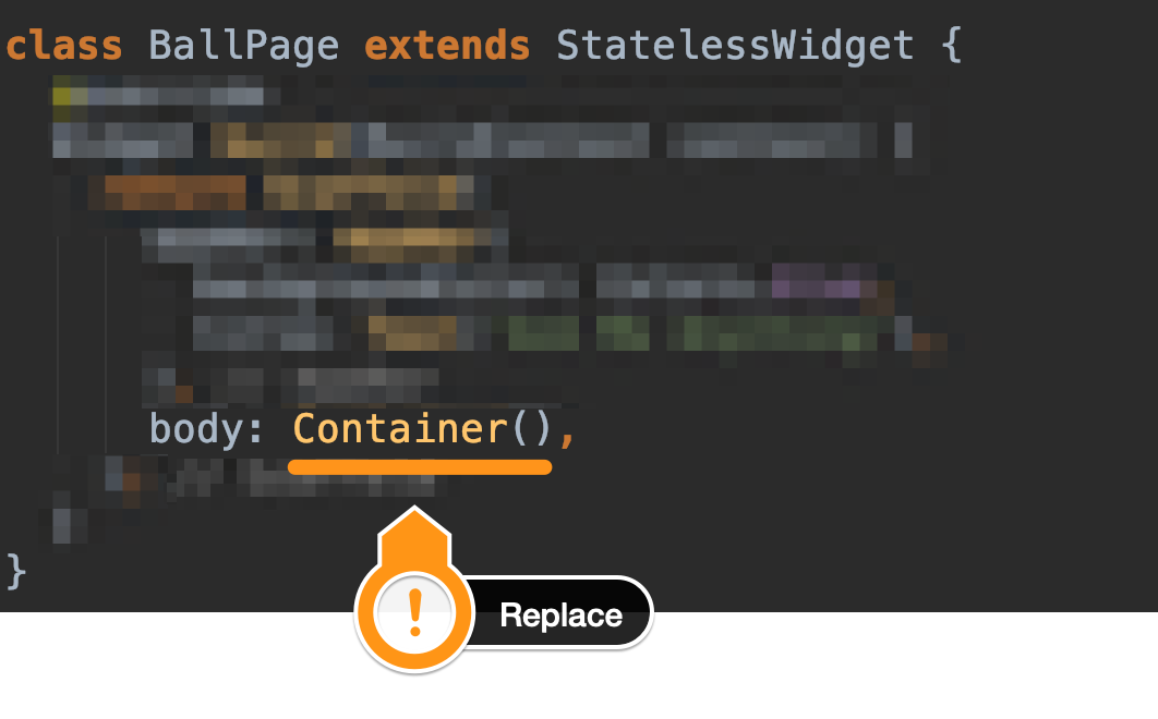 - Instead of BallPage having a body of Container() replace it with your new Stateful Widget.