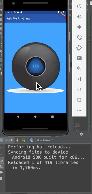 - All going well, you should now have the full functionality of the Magic 8 Ball app, it should look like this: