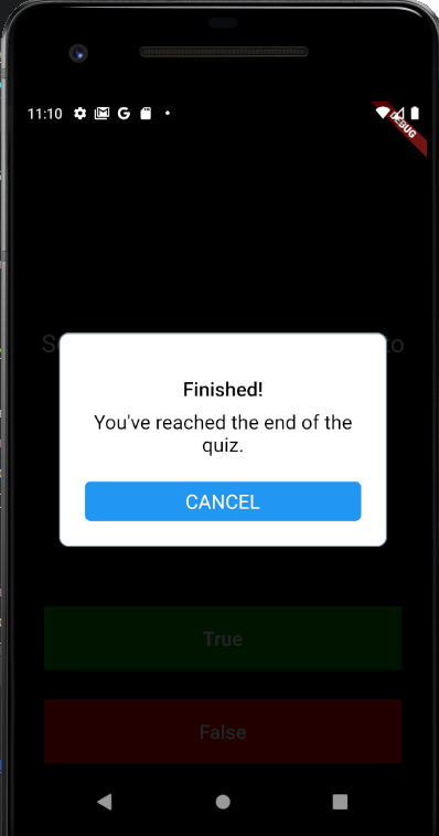 //TODO: Step 3 Part B - Use a print statement to check that isFinished is returning true when you are indeed at the end of the quiz and when a restart should happen.