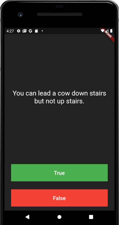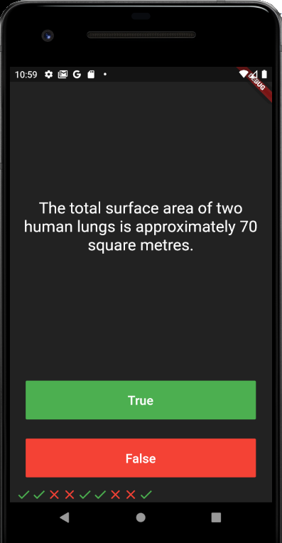 //On the next line, you can also use if (quizBrain.isFinished()) {}, it does the same thing.