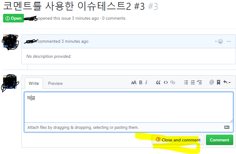 그냥 코멘트 쓰고 close and comment를 해주면된다.
