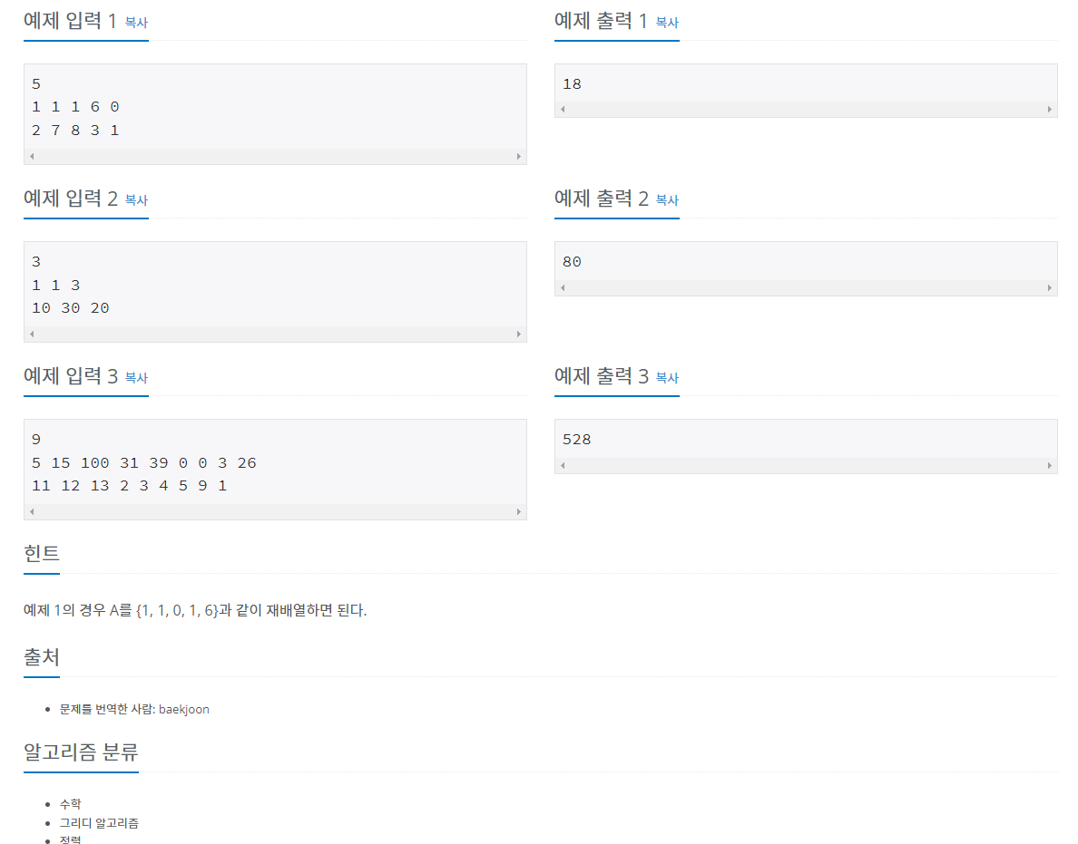https://www.acmicpc.net/problem/1026