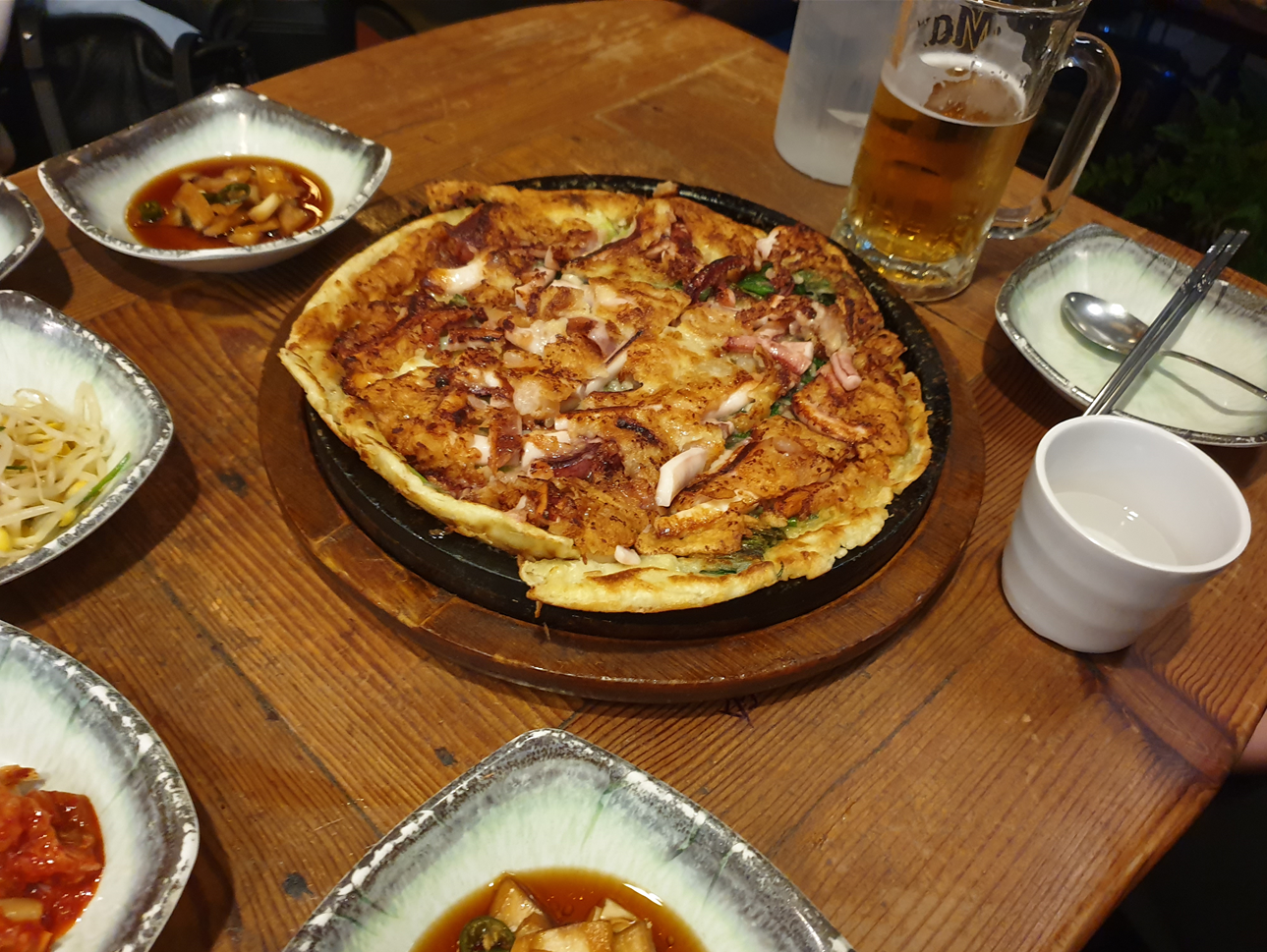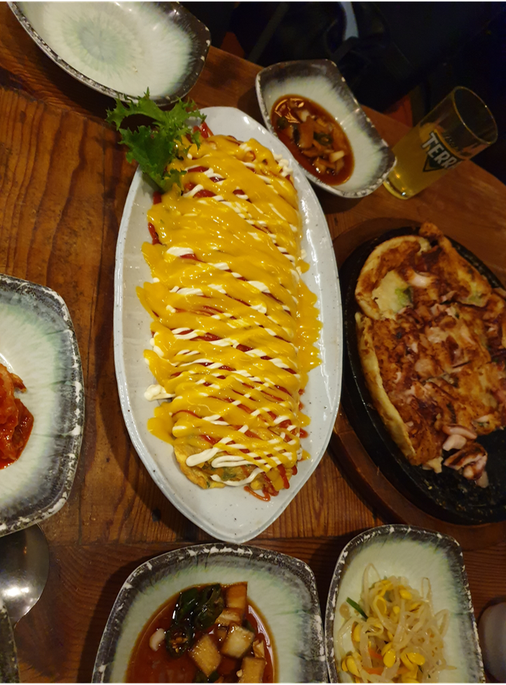 해물파전, 치즈계란말이와 함께 맥주를 한잔했습니다.