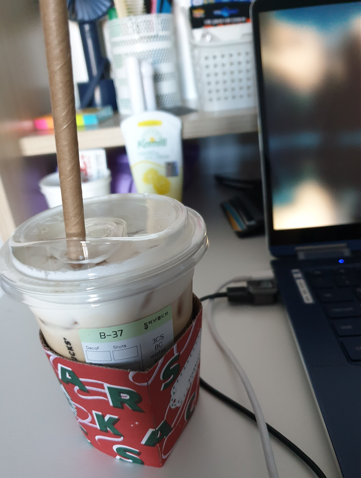 하루는 주변 산책 좀 하다가 스타벅스에서 기프티콘으로 받은 토피넛 콜드브루를 테이크아웃하고 집에서 노트북하며 마셨습니다.
