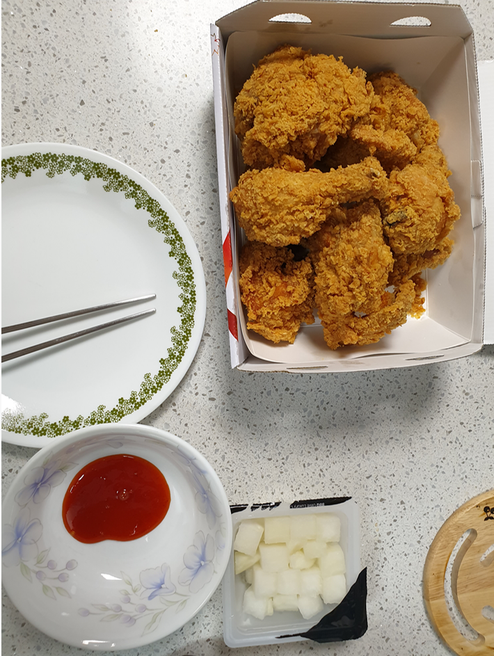 엄마가 치킨기프티콘을 줘서 저녁에 BHC 황금올리브(?) 치킨을 시켜먹었다.