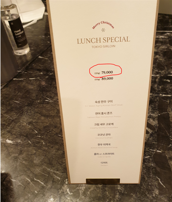 7,9000원 (120g) 한우 오마카세를 2인분을 시켜먹었다. (런치인데 스시 오마카세보다 가격이 좀 더 썐거같다)