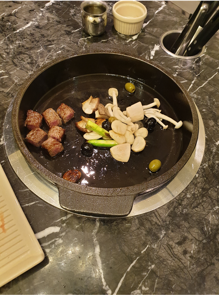 한우는 당연히 구워주시고 굽기를 어느정도로 할 지 여쭤보신다. 우리는 미디엄으로 먹었다.