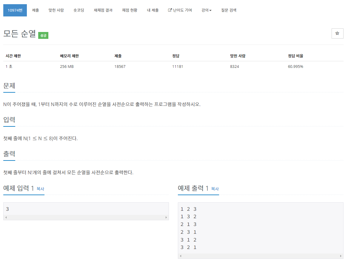 오랜만에 백트래킹과 자바 감도 익힐겸 백트래킹 유형에서 기본문제를 풀어봤습니다. ㅎㅎ