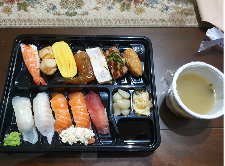 어쩔수없이 집에 일단 가서 청담초밥을 먹고 가는길에 선물받은 베스킨라빈스도 포장해갔다.