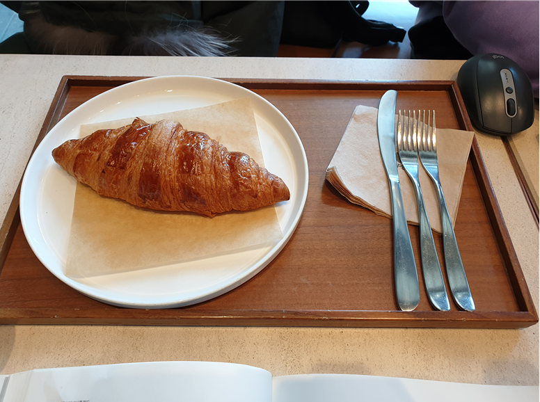 흑임자 플레이트란 음료 2잔과 나는 점심을 안먹고와서 크로아상을 먹었다.